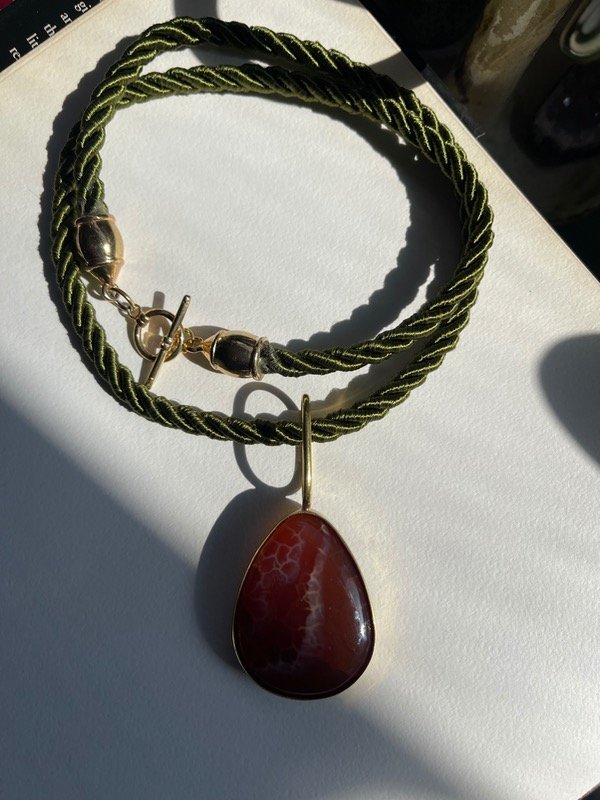 Cornalina y oro (disponible el que tiene cadena de oro y el de la última foto de soga verde)