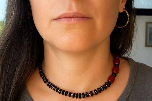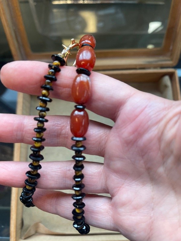 Amuleto protección Ojo de Tigre, onyx y Ágata cornalina (cierre de oro)