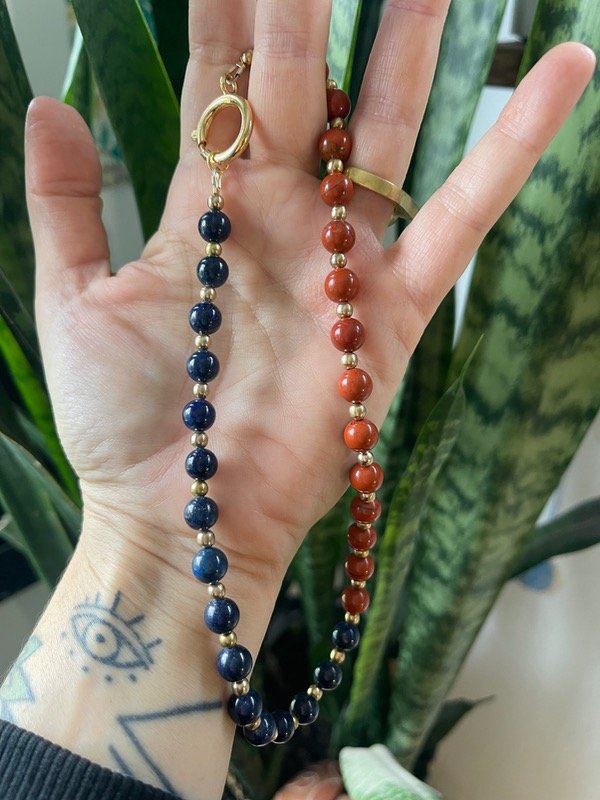 Lapislázuli afgano, jaspe rojo y oro (40cm)